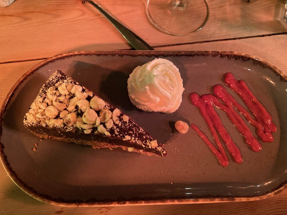 We may not have saved space for dessert, but flushed with foodie fabulousness, we went ahead anyway with crème brûlée served in a mason jar, and a velvety rich chocolate and hazelnut torte.